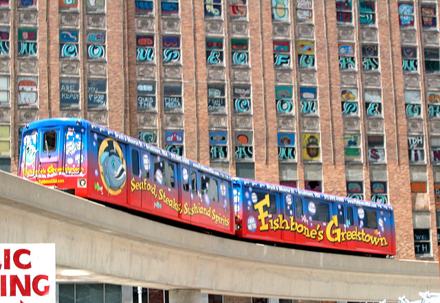 | Railroad freight cars and subways have been frequent objects of attention. This scene is from Detroit near the United Artists building |